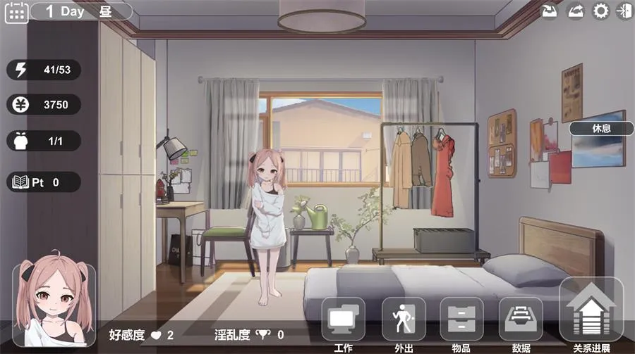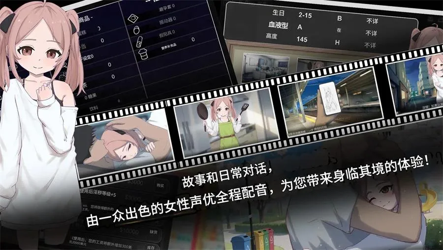 通过日常互动培养与少女的好感度,并可用工作赚取的钱在商店购买物品。
