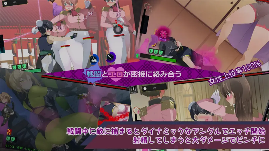 凭借直观操作即可进行战斗。登场的敌方角色共计36种,全部为女杏角色!