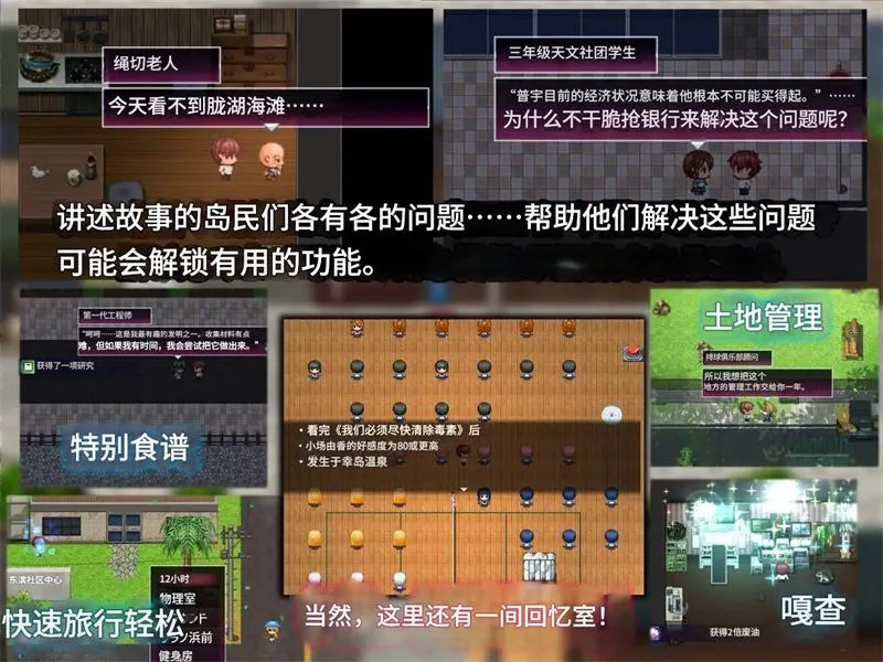 帮助他们解锁各种便利设施,见证故事的展开。