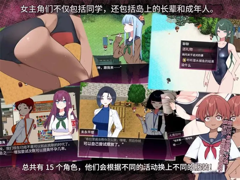 基本上,提升与她们的好感度就能解锁一些成人剧情,所以探索岛屿的同时,别忘了每天和她们互动哦!