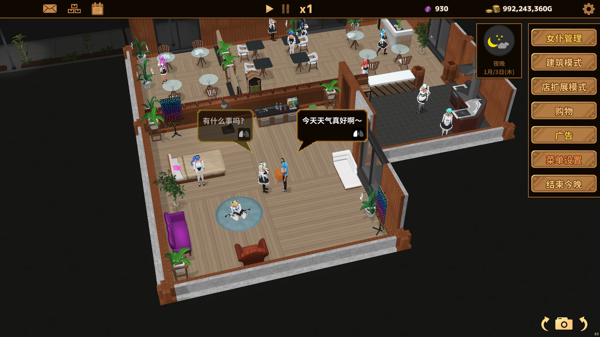 - 资金增加后,雇佣更多女仆,实现经营的自动化。